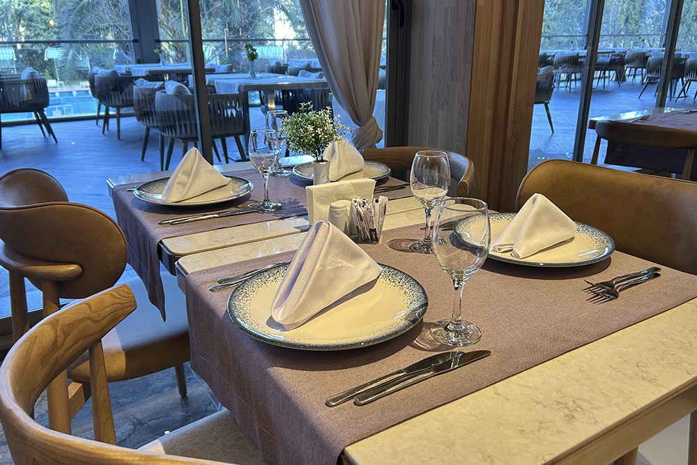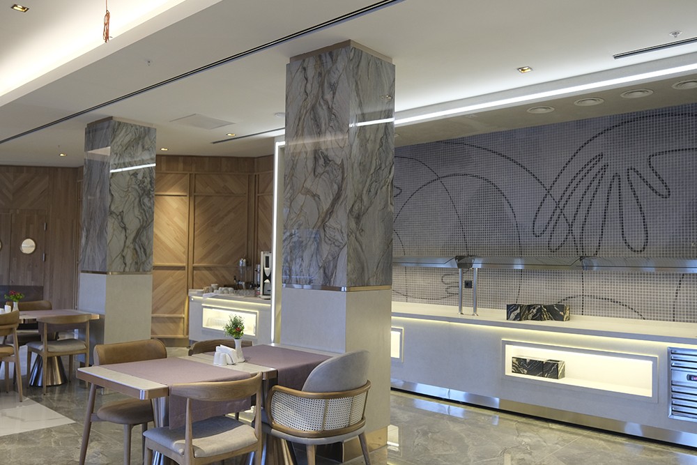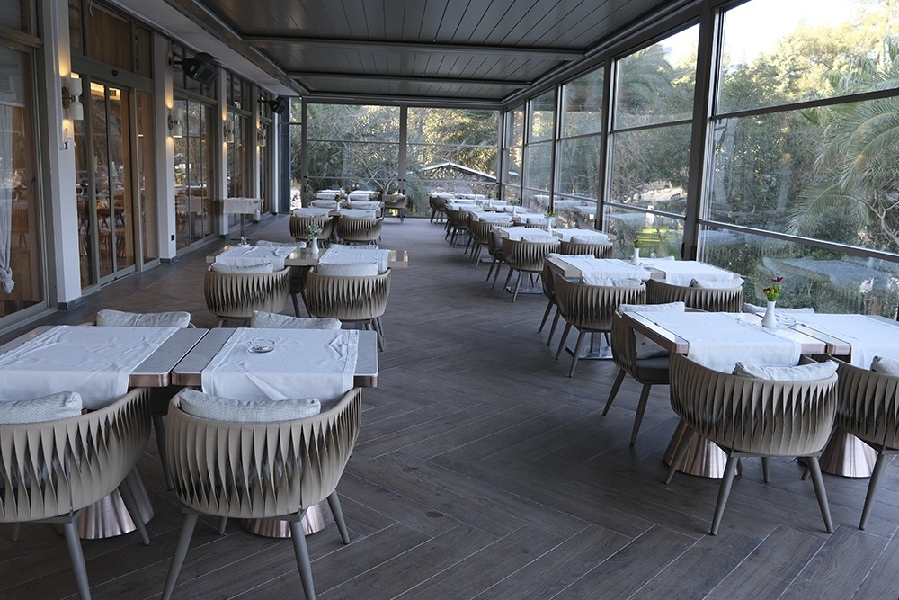 With a seating capacity of 100 guests, Hestia Restaurant offers a comfortable and elegant atmosphere. Thanks to its bioclimatic outdoor area with a retractable glass system, it provides a delightful dining experience throughout all four seasons. Our menu features selected specialties from Turkish, Italian, and French cuisine, available as set menus or à la carte options. A wide selection of alcoholic and non-alcoholic beverages caters to different tastes. With live music events and a flexible seating layout, the restaurant adapts seamlessly to various occasions — from business dinners and family gatherings to celebrations and private events.